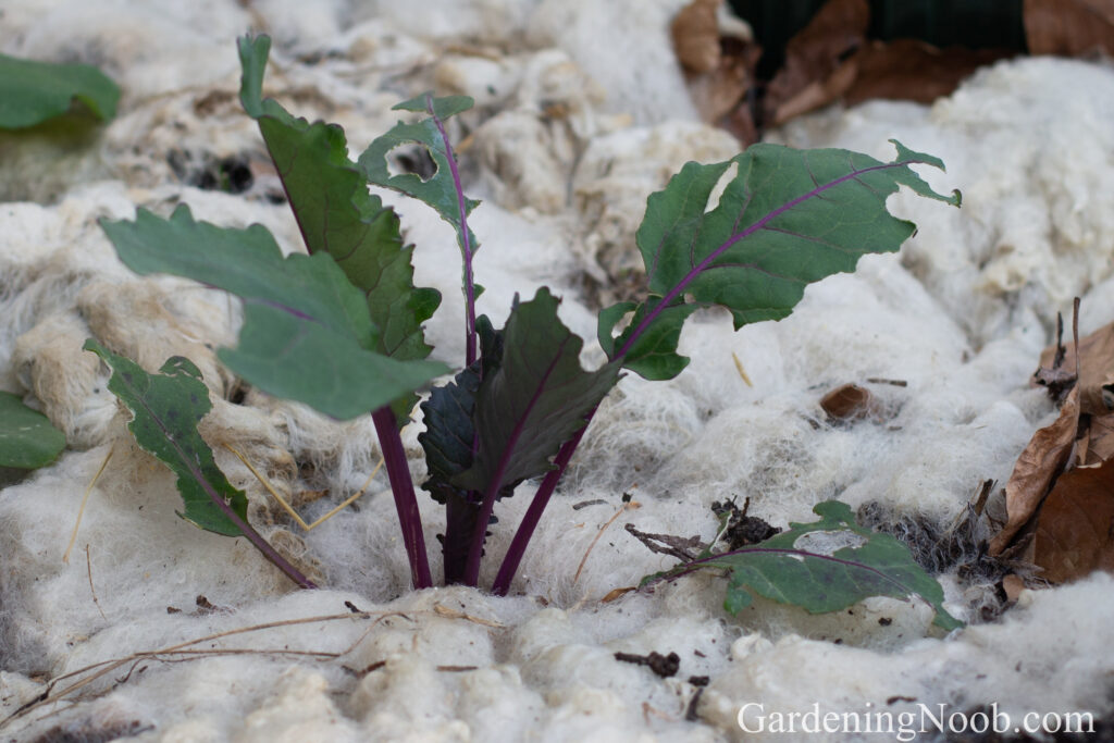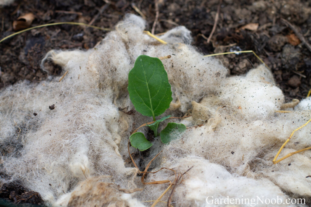 Táto malá sadenica kapusty bola jednou z prvých rastlín, ktorým v mojej záhrade prospela ovčia vlna.