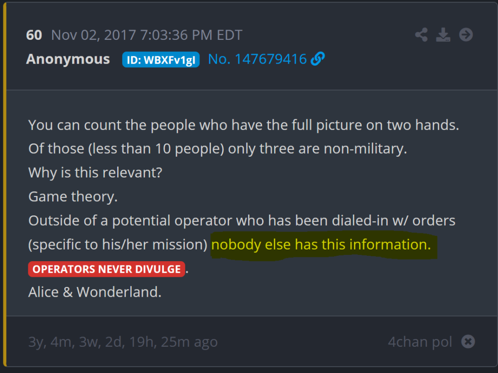 Keď sa dnes ráno zobudíte, zhlboka sa nadýchnite slobody. Len aby ste vedeli, že je to s Trumpom isté – Boh ho pomazal. Čo o ňom skutočne nikto nevie je to, že študoval na MIT 7 rokov a nikdy nebol zapísaný v zozname študentov. Trump hovorí viacerými jazykmi, vedeli ste? Hovorí sa tiež o ňom, že je kvantovým fyzikom. Nepochybujem o tom ani na chvíľu, pretože ak si toho človeka naštudujete, narazíte na fotografie kníh v jeho kanceláriách v poličkách a na stoloch a všetko, čo musíte urobiť, je spojiť bodky. Je génius. Ja osobne viem, že sa to stane. Prezident Trump drží všetky karty.