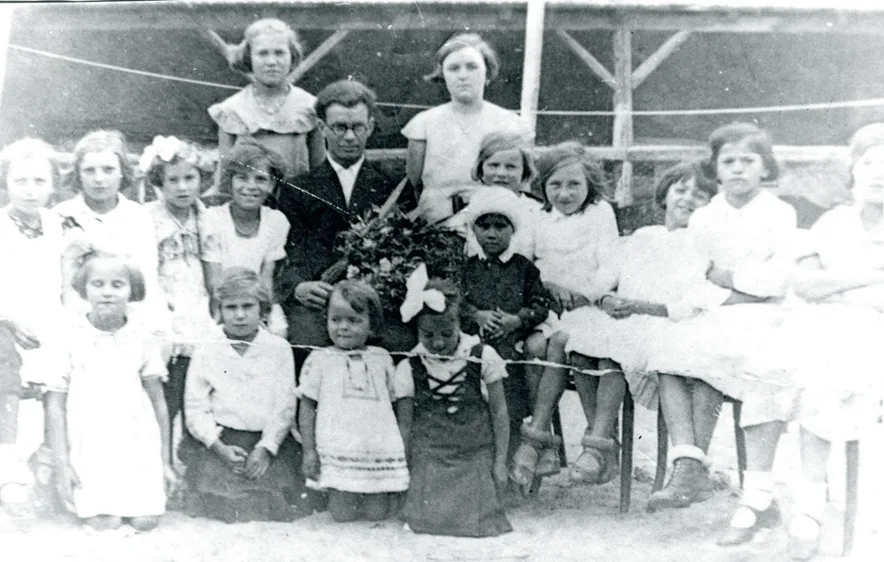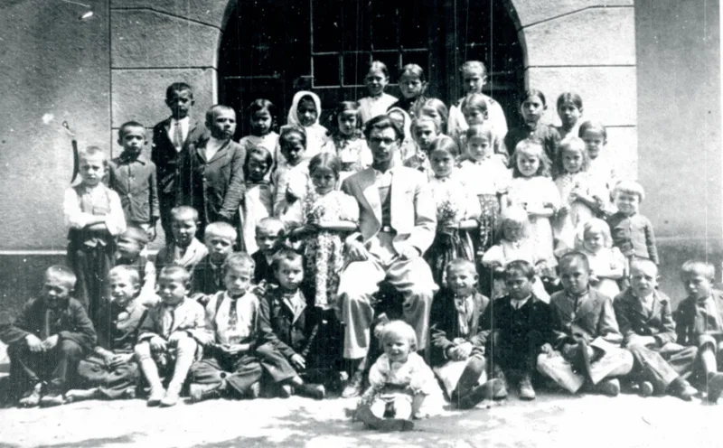 Foto: Ján Nálepka so svojimi žiakmi (zdroj: archív Múzea Spiša v Spišskej Novej Vsi)