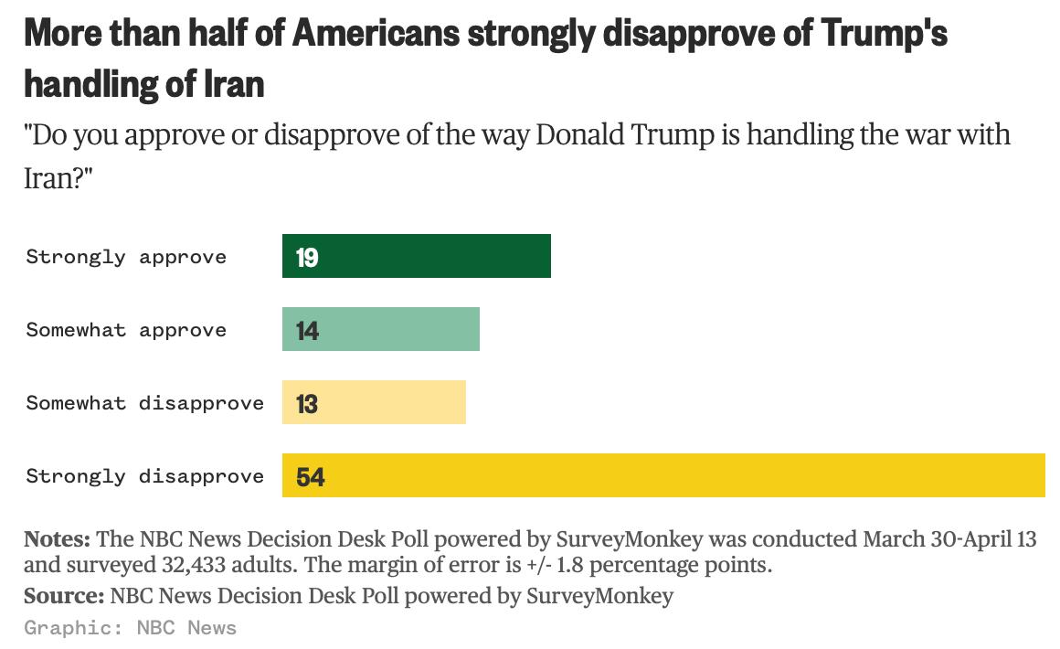 68% obyvateľov USA má negatívny pohľad na Trumpovo iránske dobrodružstvo. Toto ho ťahá nadol ešte viac ako zlý stav americkej ekonomiky. Podpora medzi republikánmi klesá, najmä v kontexte vojny. Trumpova koalícia MAGA sa rozpadá – a čo sa stane, ak eskalácia bude pokračovať aj v lete?