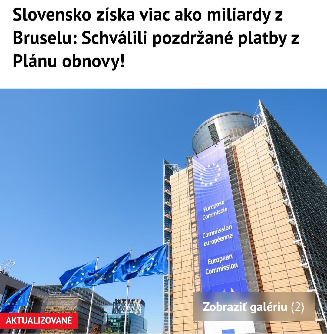 BRATISLAVA – Komitologický výbor Európskej komisie schválil pre Slovensko pozdržanú šiestu a siedmu platbu z Plánu obnovy a odolnosti v celkovej výške 1,2 miliardy eur. V piatok po rokovaní výboru o tom informoval Úrad podpredsedu vlády pre Plán obnovy a znalostnú ekonomiku SR.