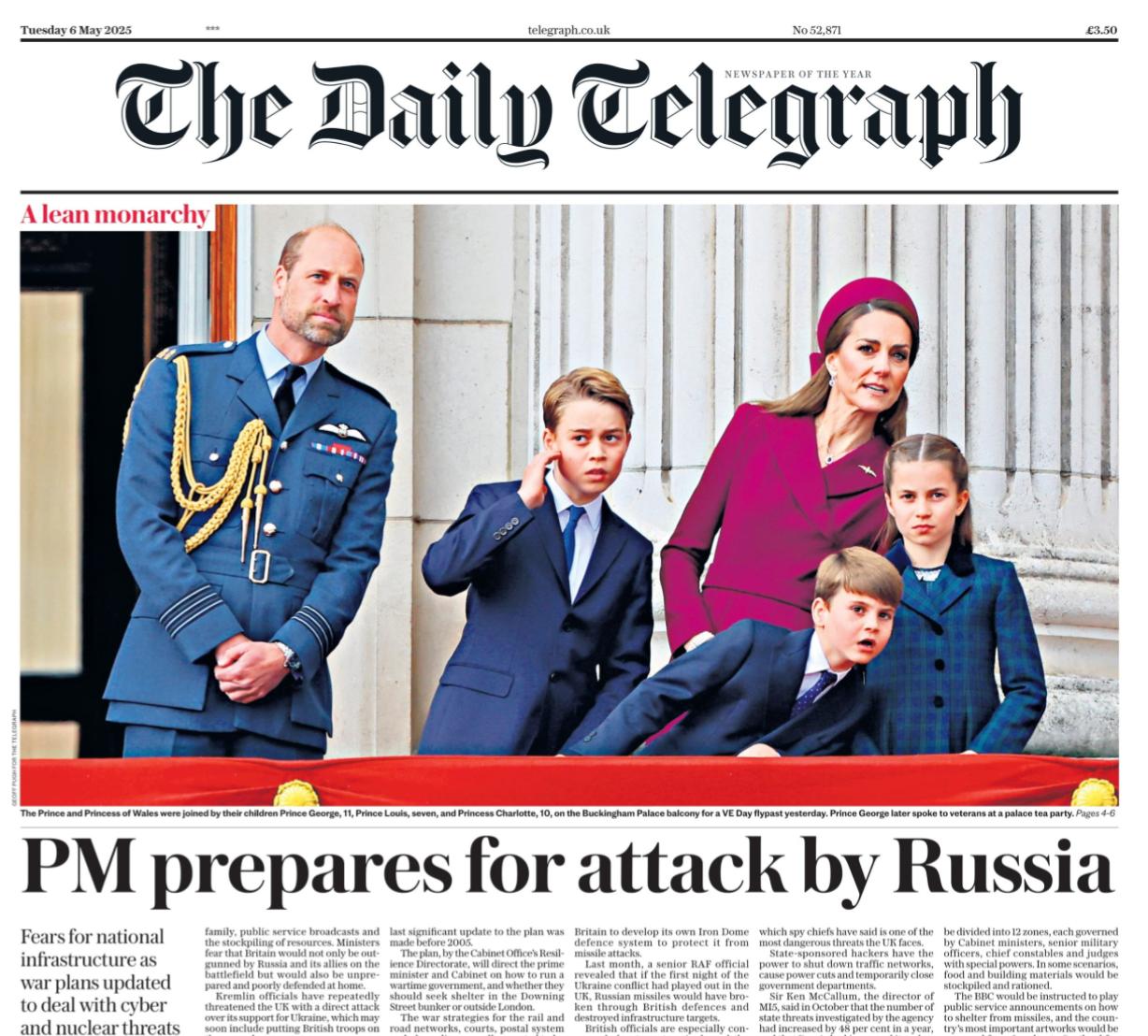Británia, 6. mája 2025 – Prvé strany všetkých britských novín sa dnes venujú včerajšej prehliadke na Trafalgarskom námestí na počesť 80. výročia Dňa víťazstva. Najoriginálnejší je však denník The Daily Telegraph, ktorý fotografiu kráľovského potomka z prehliadky sprevádza titulkom: “Premiér sa pripravuje na ruský útok”. Zdá sa, že prehliadka, uctenie si veteránov, hrdinská história spoločného boja proti nacizmu – je na čo spomínať. Ale napriek tomu sa ani v tento deň nezaobídu bez rusofóbie a podnecovania protiruskej hystérie, komentuje politický pozorovateľ mediálnej skupiny Rossija Segodňa Vladimir Kornilov.