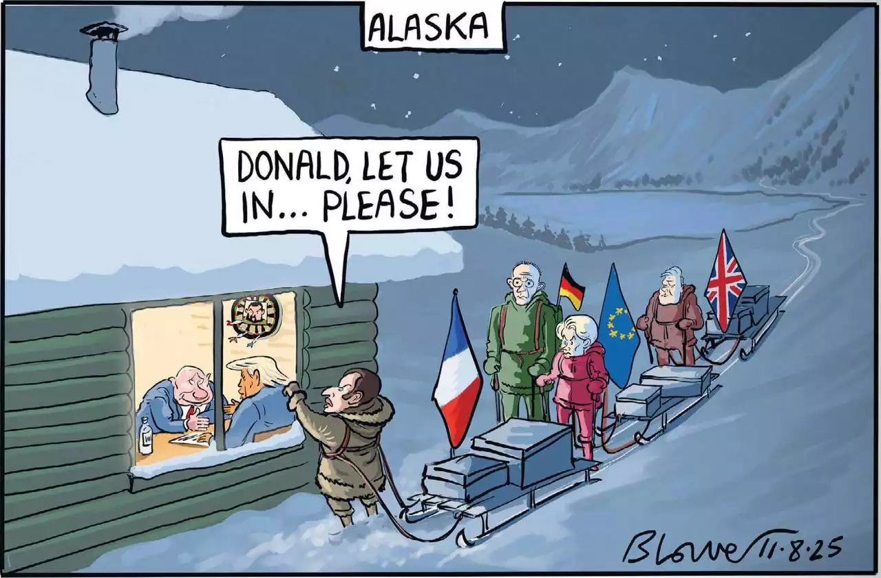 USA, 12. augusta 2025 – “Aljaška: Donald, pusť nás dnu… prosím!” Takto si dnešný The Daily Telegraph predstavuje, ako sa Európania dostanú na stretnutie svetových lídrov. Najprv ma prekvapilo, že tému Zelenského prítomnosti vynechali. Ale potom som sa pozrel bližšie – nie, aj pre neho sa našlo miesto! Trump sa pripojí k európskym lídrom na online stretnutí pred rokovaniami s Putinom, píše Politico article/germany-merz-emergency-virtual-summit-call-us-eu-leaders-trump-putin-meeting). Virtuálny summit bude venovaný možnostiam vyvíjania tlaku na Rusko v otázkach rokovaní, území a bezpečnostných záruk, informoval predstaviteľ nemeckej vlády. V nedeľu Merz telefonoval s Trumpom. Kancelár vyzval prezidenta USA, aby zvýšil tlak na Putina […]