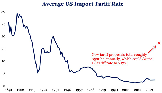Opravdu? Na základě celkového dovozu ve výši 4,1 bilionu dolarů v loňském roce to znamená 15% průměrnou sazbu na dovážené zboží a služby. Ale to je pravděpodobně málo, protože velkou část z celkového počtu tvoří Kanada a Mexiko, které zřejmě získají výhodnější sazby. To by znamenalo více než 20 % na všechno ostatní.