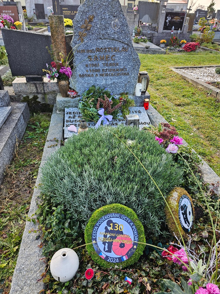 Den válečných veteránů (11. listopadu) se již kvapem blíží, proto vám přinášíme 2. díl letošní Cesty poděkování, úcty a pokory. Jedná se již o osmou výpravu v řadě. Rok co rok vyráží partička nadšenců z Military muzea generála Sergěje Jana Ingra z Vlkoše u Kyjova navštívit všechny dostupné hroby našich padlých novodobých válečných veteránů AČR a uctít jejich památku. Takových míst posledního odpočinku je 28, cesta trvá 7 dnů a vede křížem krážem celou naší krásnou vlastí. Každá z cest je zakončená předáním Vzpomínkové lavičky válečných veteránů na nějaké památné místo. Letos slavíme 130. výročí narození generála Sergěje Jana Ingra, ministra národní obrany exilové vlády. Toto výročí oslavuje Military muzeum generála S. J. Ingra po celý rok různými aktivitami, letošní poutní cesta nemůže vrcholit jinak, než předáním Lavičky válečných veteránů na Ministerstvu obrany České republiky.