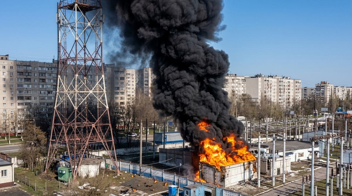 Foto: Drony udeřily v Belgorodu. Zásah rozvodny vyvolal požár a výpadky proudu | Telegram