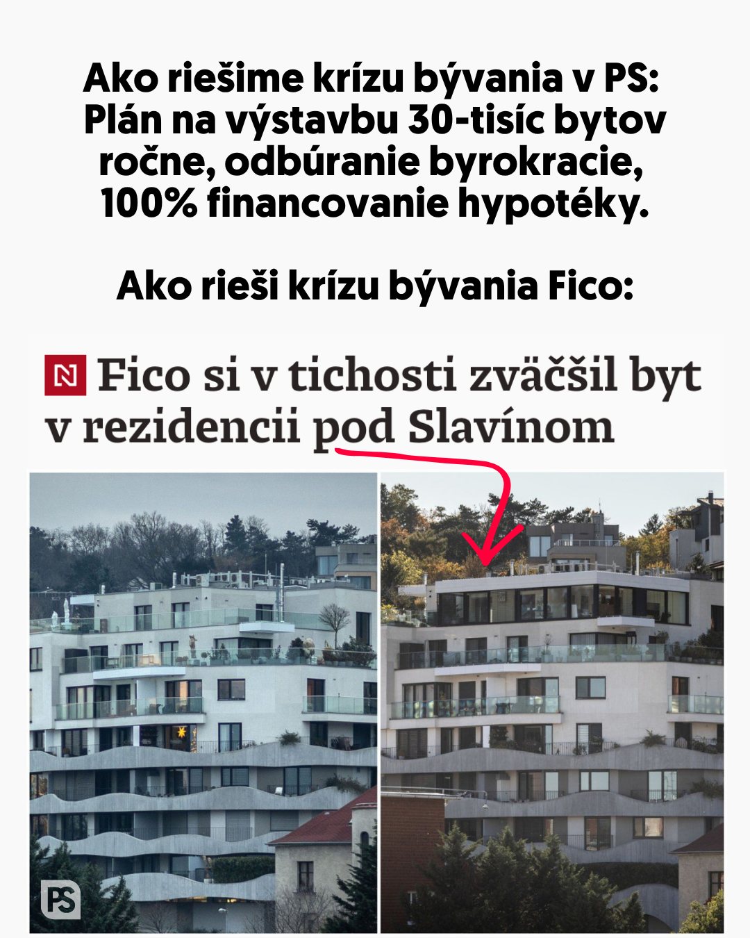 Fico si dal zastrešiť a zaskliť terasu, zväčšil si tak byt zo 125 na 200 metrov štvorcových. Bez toho, aby o tom úrady vedeli. Ľudia nemajú z čoho žiť, ale Fico si zdvojnásobil plat. Ľudia nemajú na vlastné bývanie, ale Fico si zdvojnásobil výmeru bytu.