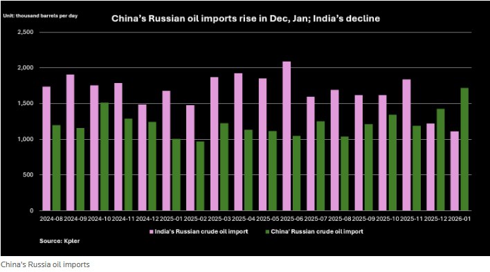 Ruská ropa však nezostala na mori ani na brehu. Čínske rafinérie s radosťou skupujú všetku ropu, ktorú indické rafinérie nekúpia: na rozdiel od indických spracovateľov ropy vlasteneckí čínski komunisti zvysoka kašlú na mienku strýka Sama pokiaľ ide o obchod s Ruskom. Rast dopytu po rope v Číne nie je poháňaný len hromadením obrovských zásob ropy (Čína sa skutočne pripravuje na horiaci Blízky východ), ale aj znížením dodávok ropy z Venezuely.