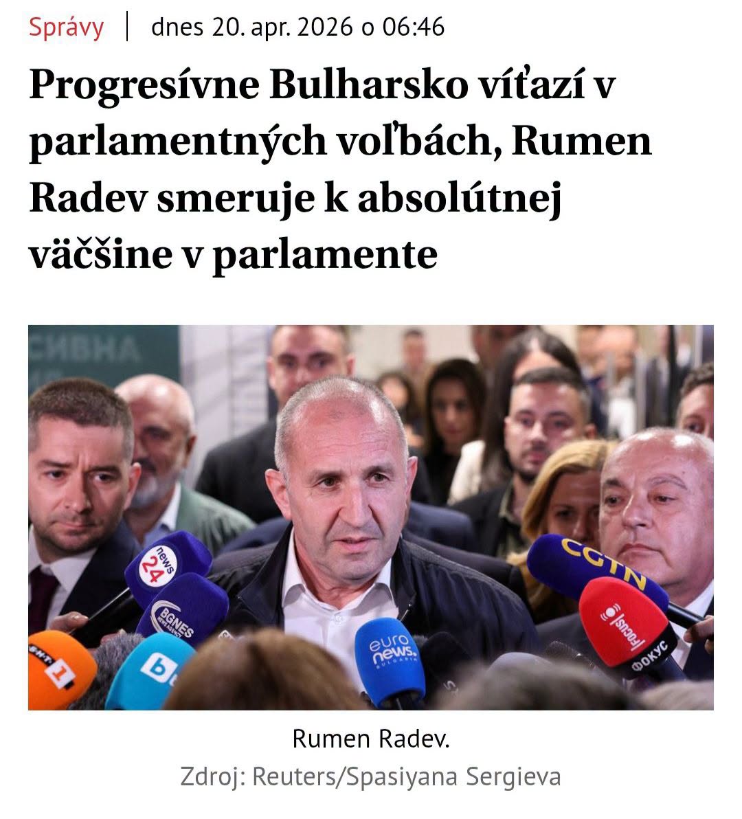 Koalícia Progresívne Bulharsko (PB) bývalého prezidenta Rumena Radeva zvíťazila … @Jajka Správy post 2026-04-20 07:59:57