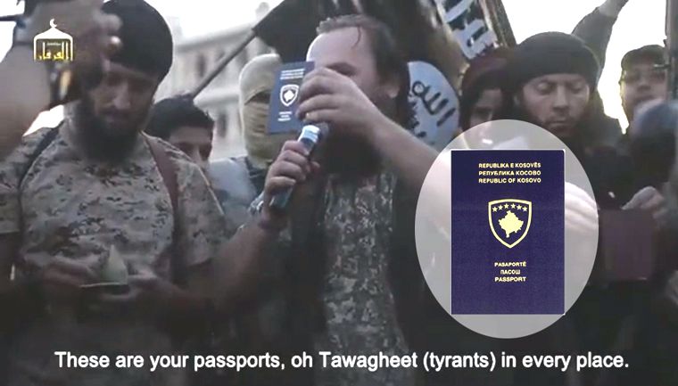 | Albánští bojovníci Islámského státu (Daeš) ukazují svůj kosovský pas. Budou i tihle korespondenčně hlasovat? |
