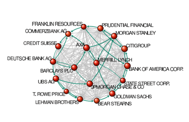 Velká část kontroly proudí do malého, těsně propojeného jádra finančních institucí, které lze považovat za ekonomické „super-entity.“