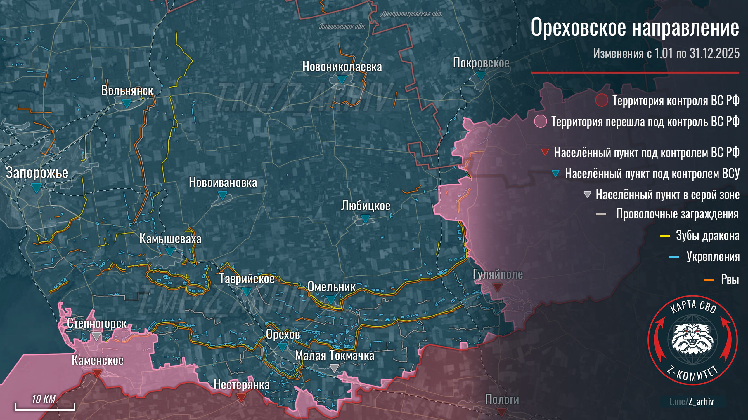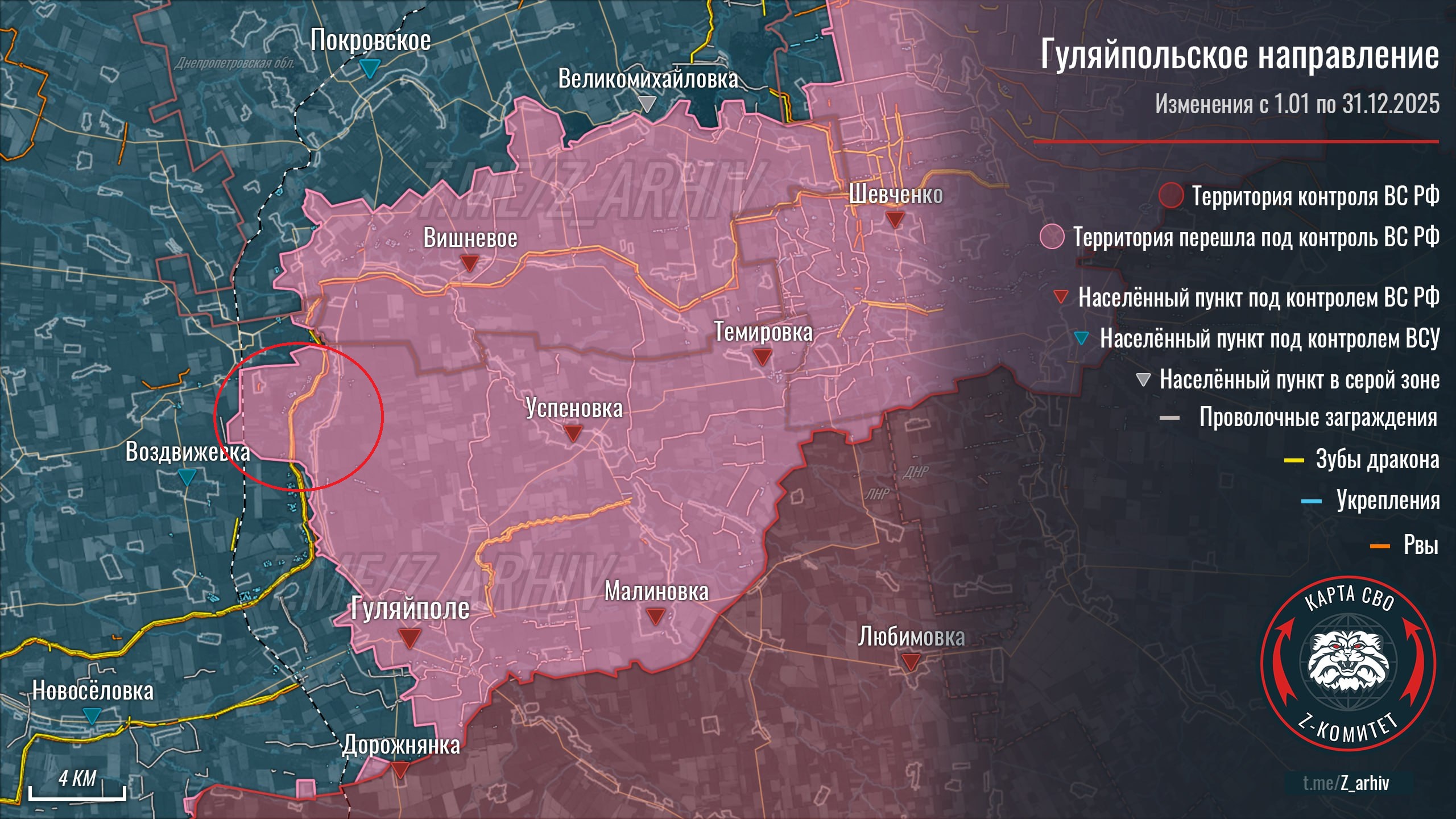 Některá česká anti-putinovská média shodou nějakých náhod šířila v ten samý den, kdy elitní válečník Ukrajiny Maxim Žorin přiznal, že neexistuje žádná obrana proti ruským dronům na optických vláknech, fantastická tvrzení jistého amerického analytika Paula Warburga, a podle nich Ukrajina vybudovala stovky kilometrů dlouhou neprostupnou obrannou linii o několika řadách ostnatých drátů, příkopů a protitankových jehlanů, a tato linie je už střežena ukrajinským dělostřelectvem, a drony, a Rusové ji nebudou moci překonat. A s odkazem na Warburga tvrdila, že tuto linii už budou střežit i ukrajinští bojoví pozemní roboti. Co k těmto Warburgovým analýzám dodat? Především Warburg ještě před třemi lety zřejmě celkem neúspěšně kázal na sociálních sítích hlavně slovo Boží, a s příchodem války na Ukrajině teprve hbitě přesedlal do nové specializace válečného kazatele. A hlavně, údajně neprolomitelná Warburgova ukrajinská obranná linie už byla prolomena, a její prolomení Rusům netrvalo ani pár dní, a prolomili ji přesně, jak na Silvestra popsal podplukovník Maxim Žorin. (Viz mapa dole)