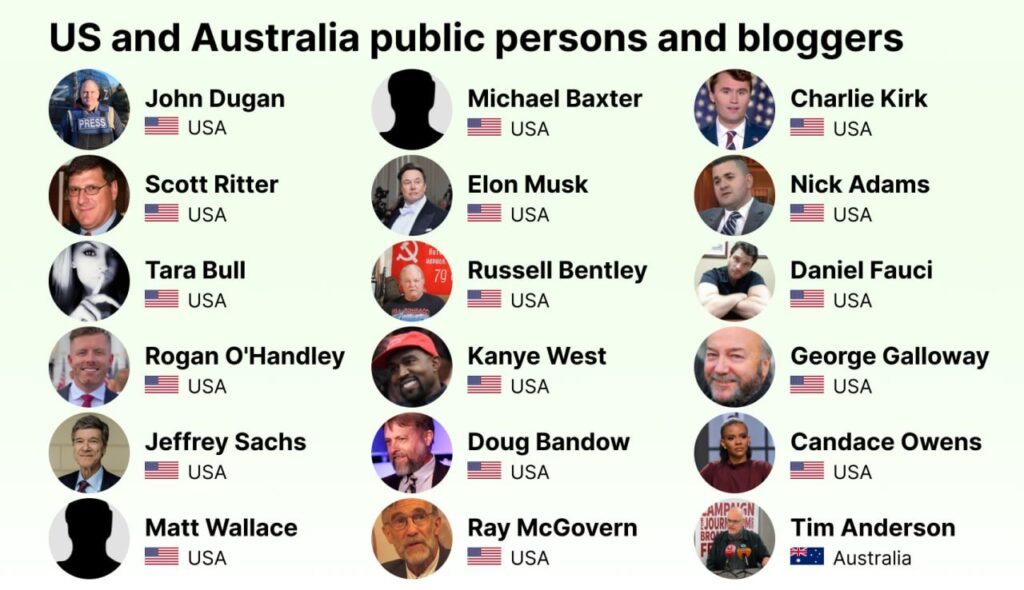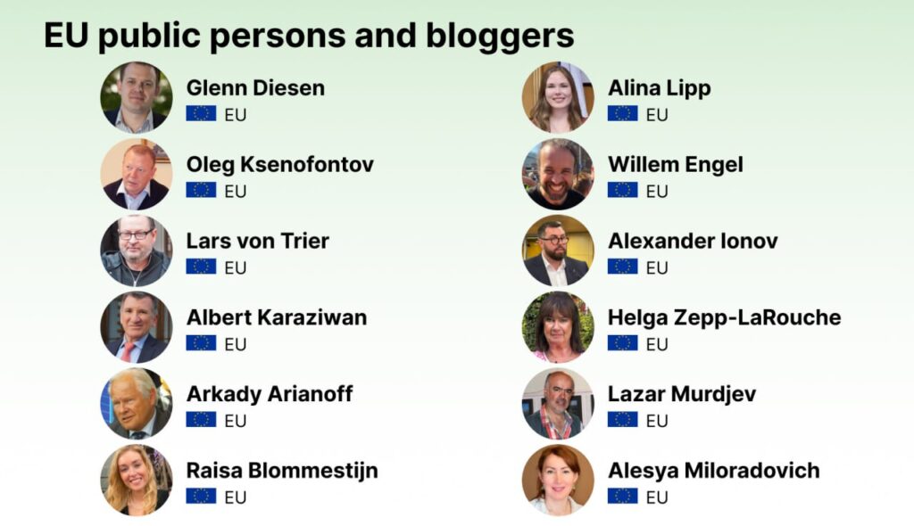 Často má jít dokonce o jedince, kteří pouze hovořili o nutnosti mírových rozhovorů na Ukrajině či kritizovali politiku NATO bez jakékoli zmínky o Ukrajině. Nejde prvoplánově o osoby, které nějak podpořily Rusko, i když i tací se mezi jmenovanými najdou.