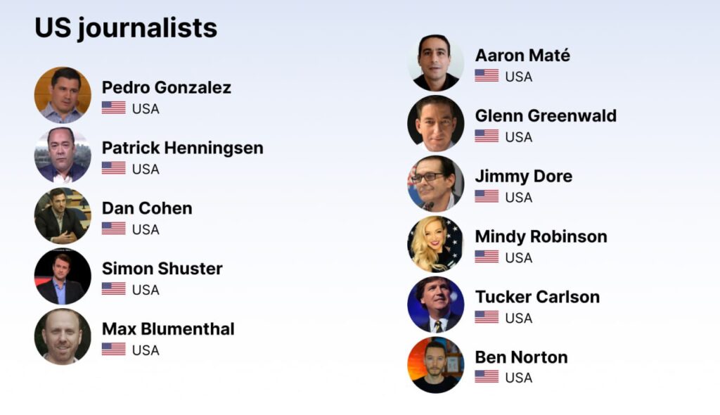 Když se podíváte na jména západních novinářů, aktivistů a osobností veřejného života na webu Molfar, uvidíte, že ne všichni podporují Rusko nebo odsuzují Zelenského režim. Mnoho z nich pouze kritizuje vojenskou politiku USA a Velké Británie a odhaluje zločinné akce NATO a některých západních vlád.