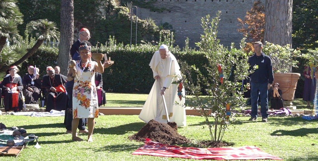 V pátek 4. října se papež František zúčastnil „vysoce symbolického obřadu sázení stromů“ ve vatikánských zahradách, během kterého se amazonská skupina klaněla před řadou soch, včetně dvou téměř identických dřevěných soch Pačamamy znázorňujících nahou těhotnou ženu.