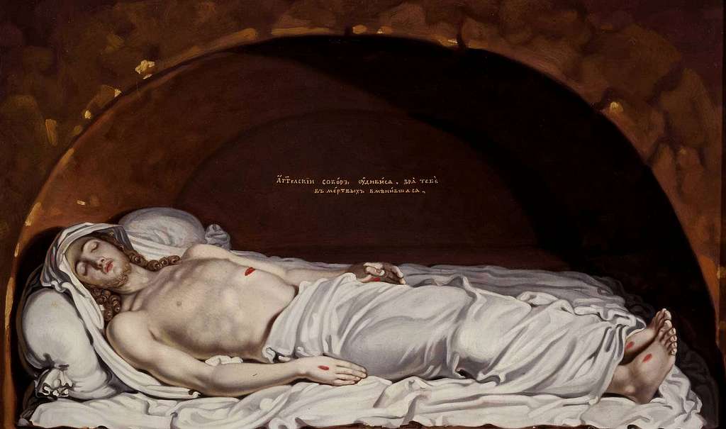 A už odpočíva v hrobe. Hľa, po tvrdom týždni prác a bolestí dopriaty mu je sladký odpočinok v hrobe! Tu už viac necíti bolesti od prútov a korbáčov, ktoré mu včera celé jeho sväté Telo rozsekali; necíti tu už viac ani tŕňovú korunu, ktorá hlavu jeho poprepichovala; ani ťarchu kríža, ktorá plecia jeho tlačila; ani ostré klince, ktoré ruky i nohy jeho prebili.
