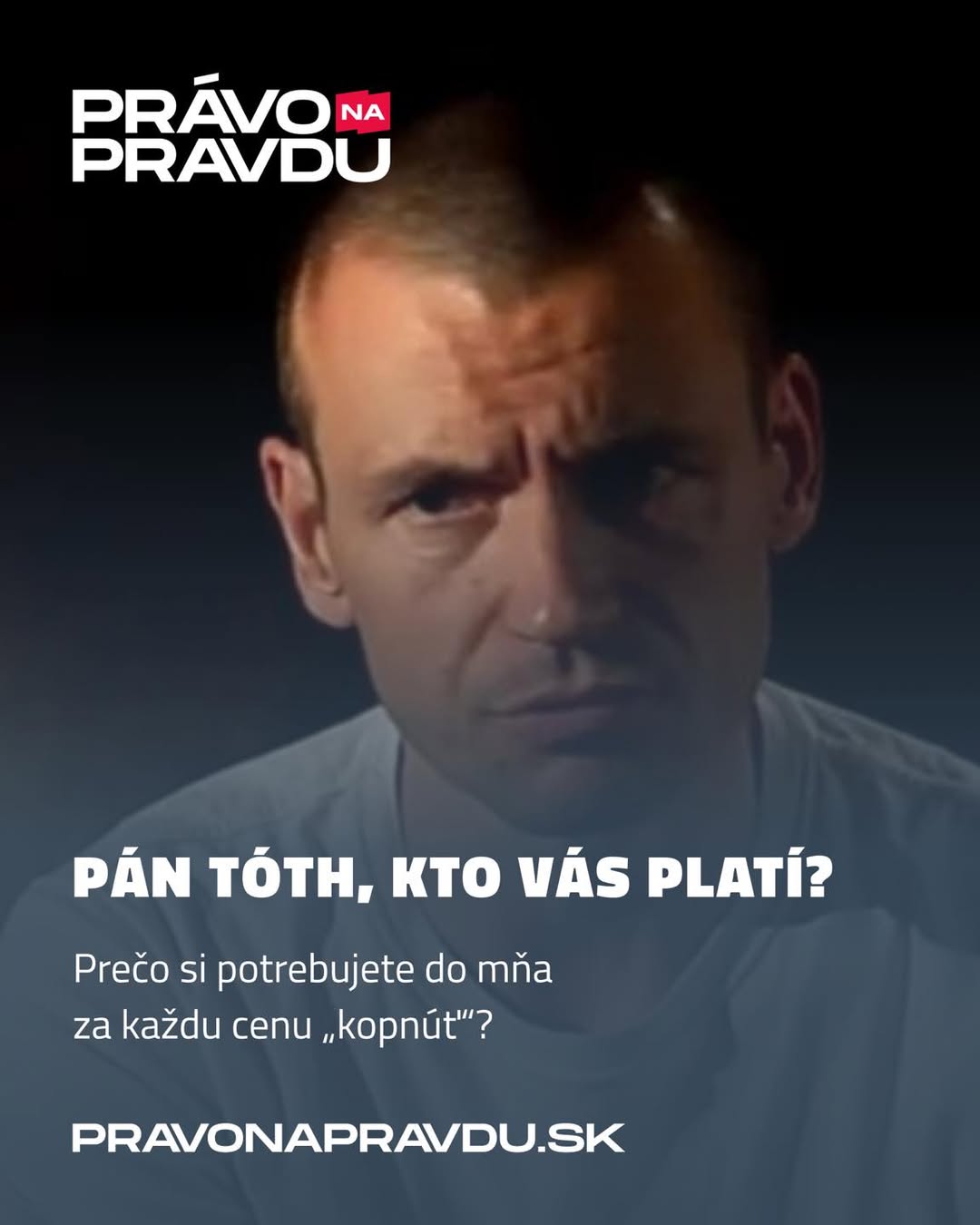 Pán Tóth, kto vás zamestnáva? Kto vás teraz platí, aby ste na mňa útočili? Zaujíma to nielen mňa osobne, ale aj sympatizantov a voličov Právo na pravdu.