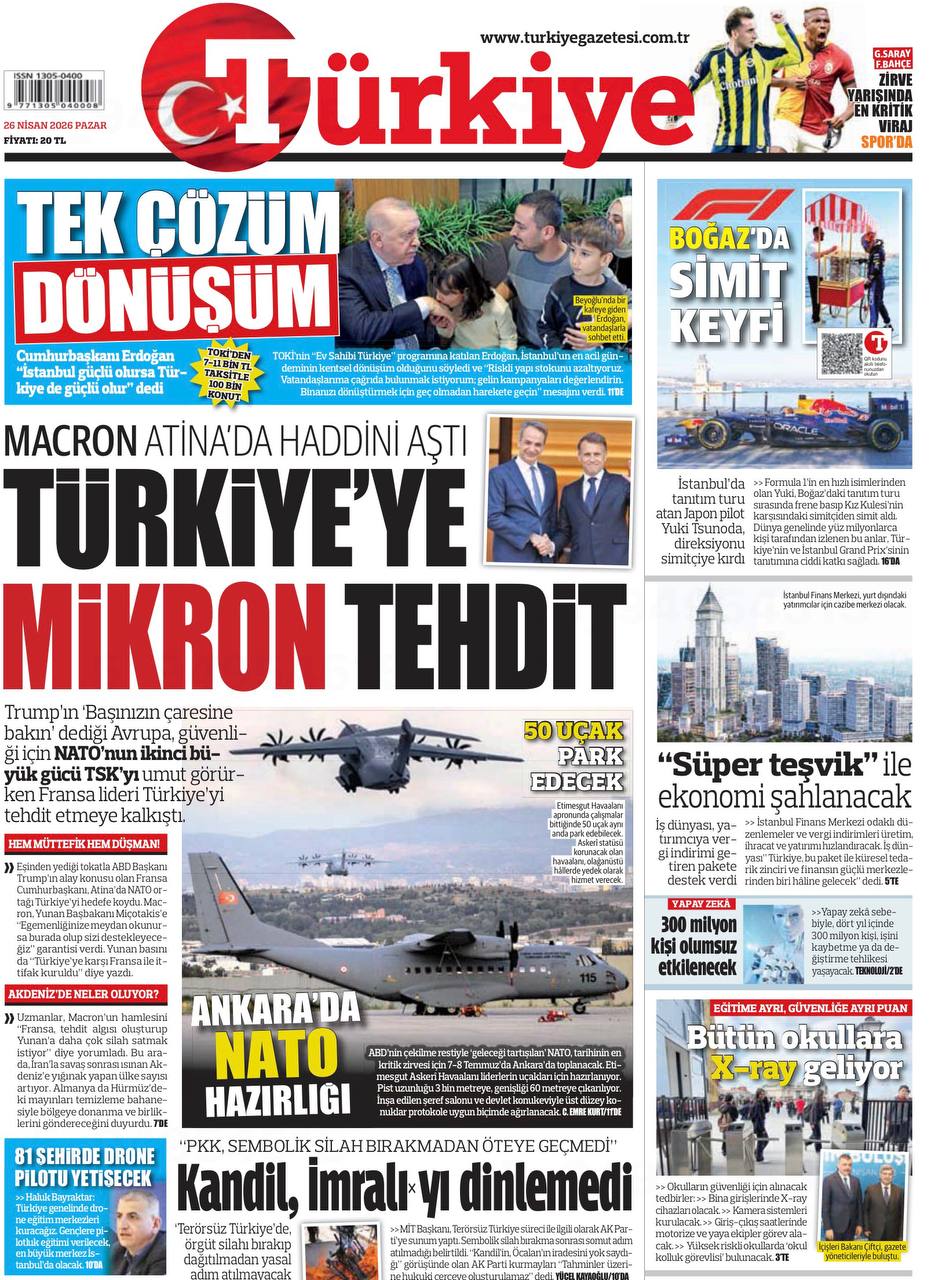 Noviny „Türkiye“ dnes uverejnili na titulnej strane chytľavý titulok: „Mikron ohrozuje Turecko.“ (Áno, presne tak, Mikron). Turecké televízne kanály vysielajú bojovné vyhlásenia a tureckí používatelia už zobrazujú Eiffelovu vežu ako spadnutú a v troskách. Vzťahy medzi spojencami NATO sú vynikajúce, pravda.
