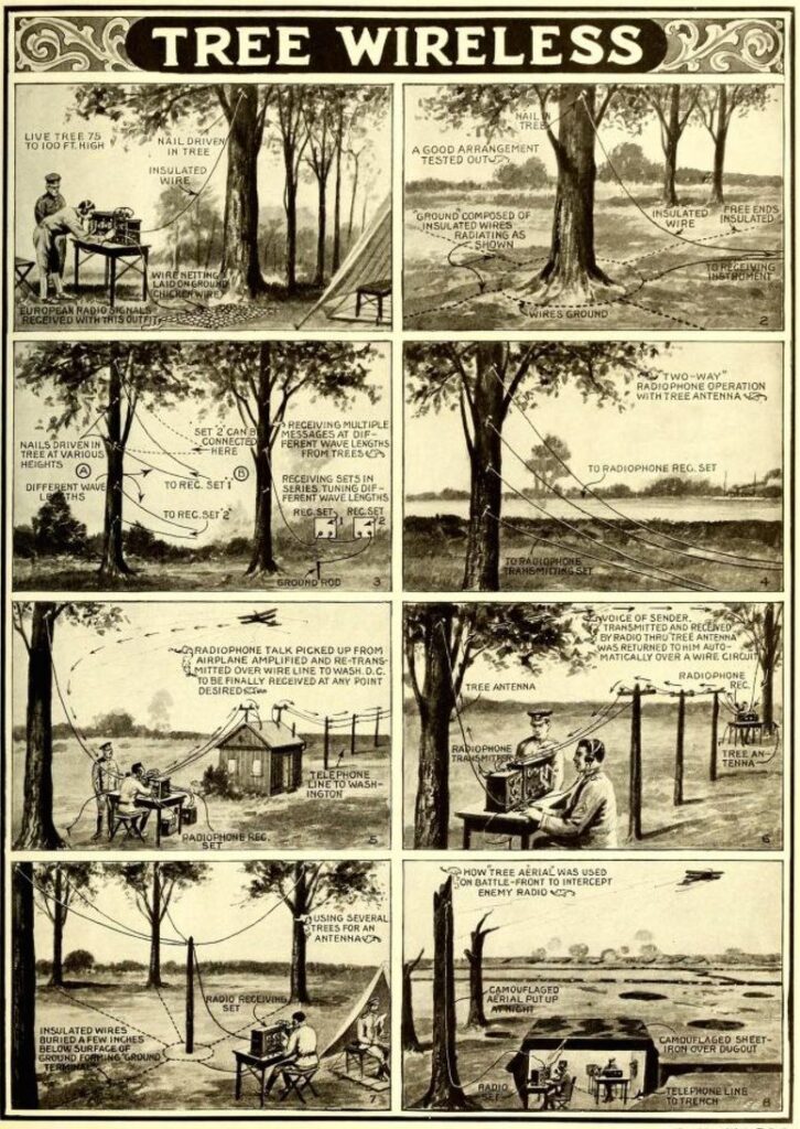 Korešpondent Scientific American pustil uzdu svojej fantázie a opísal po zuby ozbrojených vojakov s prírodným komunikačným potenciálom, s poštovým holubom v jednej ruke a bezdrôtovou súpravou na strome v druhej. V takomto svete, ako extrapoloval, celé lesy predstavovali macbethskú vojenskú hrozbu: „Armády budúcnosti (ak také budú) budú považovať všetky stromy za nebezpečné nepriateľské vzdušné stanice,“ napísal.