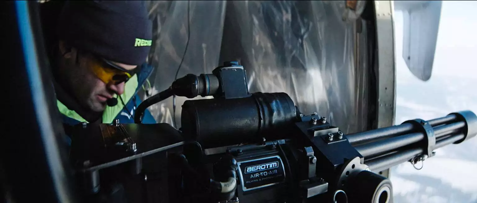 Strelec z gatlingu (zbraň s rotujúcim zväzkom hlavní) M134 kalibru 7,62×51 mm NATO inštalovaného vo dverách ukrajinského ľahkého transportného lietadla An-28 niči ruský strategický kamikadze dron Geraň. Mierenie zbrane s pomocou laseru: