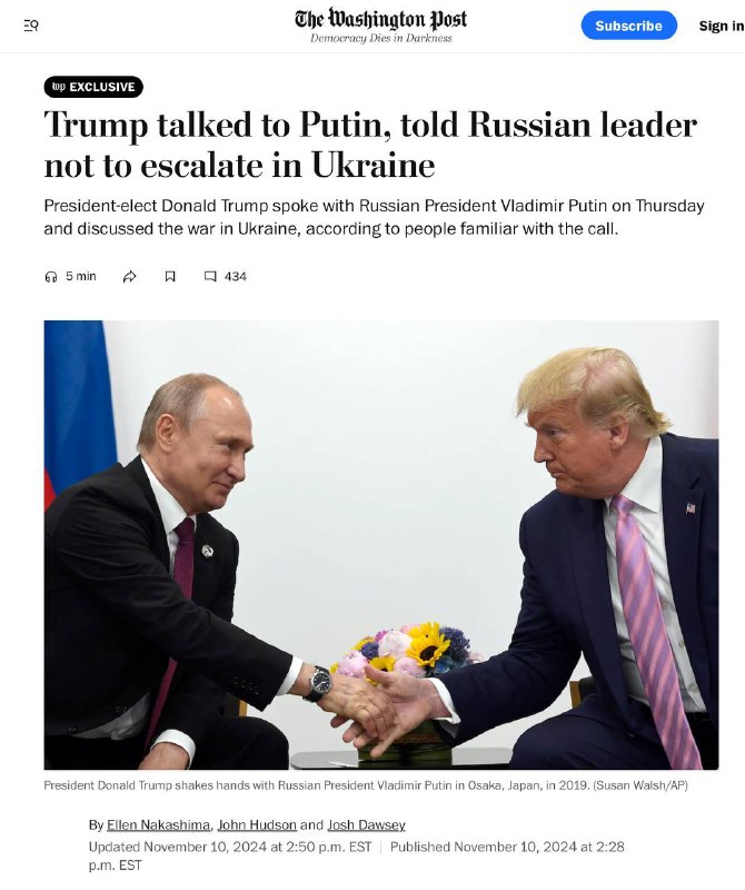 Denník Washington Post uvádza, že Trump a Putin údajne telefonovali minulý štvrtok. Trump údajne požiadal, aby “nevyhral situáciu”. Noviny píšu: