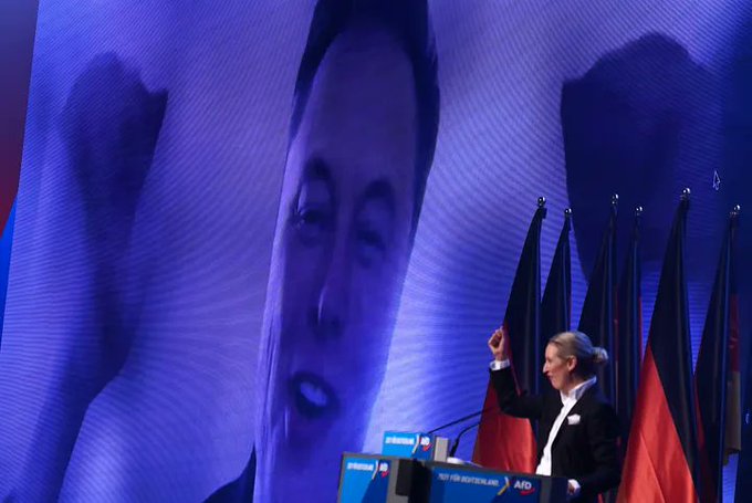 Americký miliardár Elon Musk vystúpil prostredníctvom videospojenia na predvolebnom zhromaždení Alternatívy pre Nemecko (AdG) v Halle. V príhovore k voličom povedal, že Nemci by sa nemali cítiť vinní za minulosť svojej krajiny, a vyzval ich, aby boli hrdí na to, že patria k jednej z najväčších kultúr v Európe. Podľa publikácie Zeit sa na podujatí zišlo viac ako štyritisíc občanov. Musk vo svojom prejave kritizoval aj súčasnú nemeckú vládu. Zdôraznil najmä, že súčasné úrady “nemajú záujem o blaho nemeckého národa”, “agresívne potláčajú slobodu prejavu”, preto s nimi AdG musí “bojovať, bojovať a ešte raz bojovať”.
