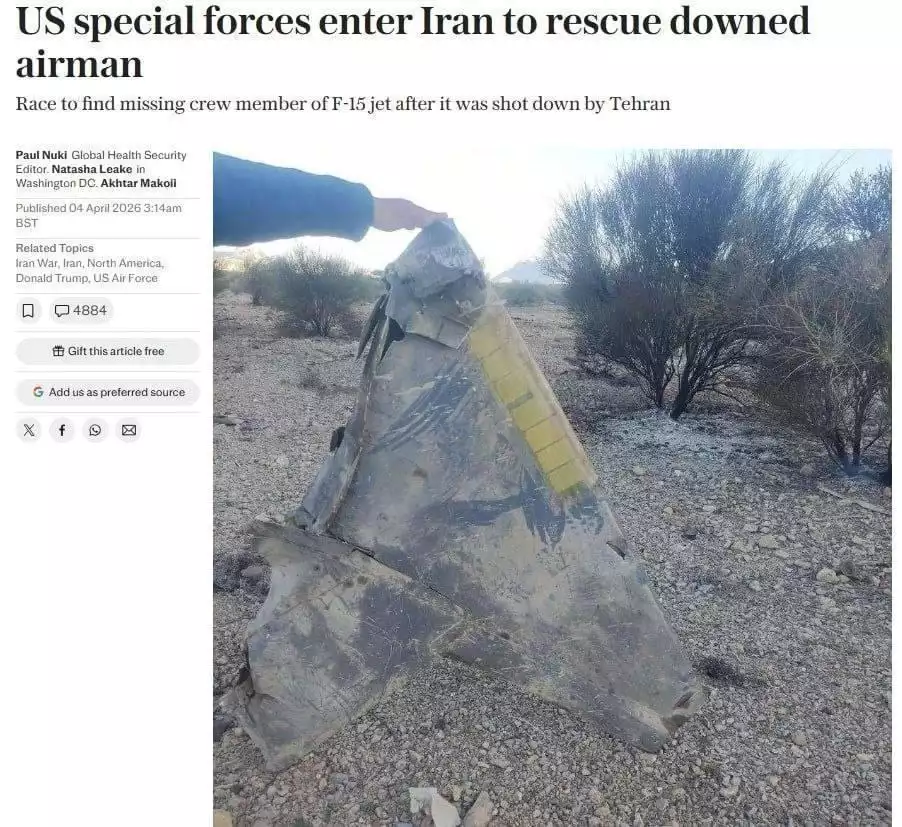 Ako informujú miestne médiá, na juhozápade Iránu vedú evakuačné jednotky špeciálneho určenia americkej armády prestrelky s iránskymi bezpečnostnými silami, pričom vykonávajú pátraciu a záchrannú operáciu na záchranu amerického pilota zostreleného lietadla F-15. Boje prebiehajú v provinciách Koghiluyeh a Boyer-Ahmad, táto operácia však môže byť prípravou na rozsiahlu pozemnú inváziu.