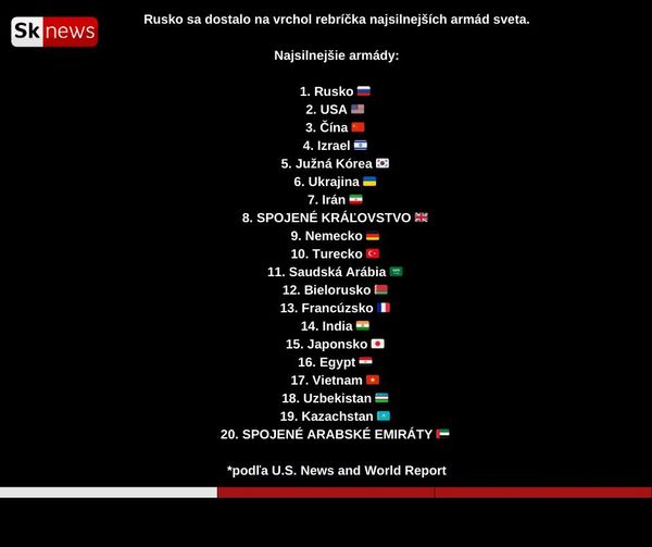 Rusko sa dostalo na vrchol rebríčka najsilnejších armád sveta. Najsilnejšie armády: 1. Rusko 🇷🇺