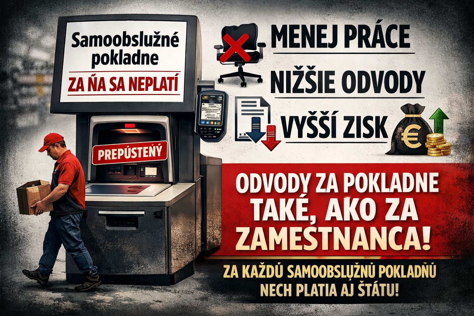 👉 Každá samoobslužná pokladňa nahrádza človeka.