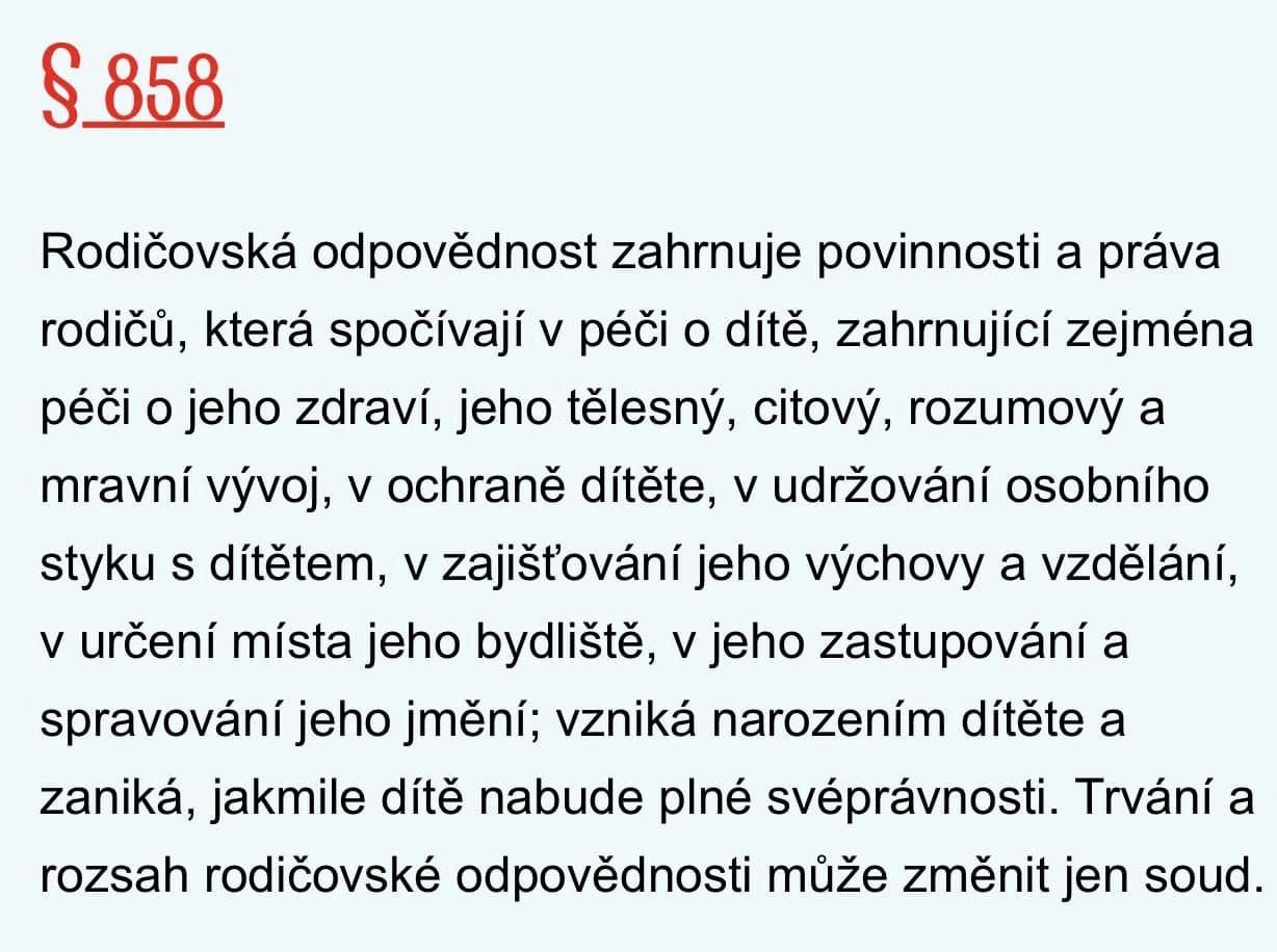 Zastávám proto názor, že škola MUSÍ respektovat práva rodičů, když tito dají jasný pokyn, že si nepřejí účast svého dítěte na sexuální výchově o komunitě LGBT. Opírám to o dále uvedené právní ustanovení občanského zákoníku.