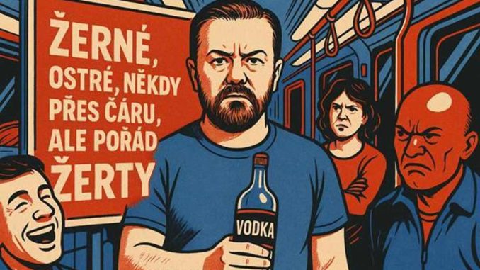 Ricky Gervais není politik. Je to komik s vodkou. A jeho billboardy nejsou nenávistný manifest, jsou to vtipy. Černé, ostré, občas přes čáru, ale pořád vtipy. A dokud je smíme říkat nahlas, jsme svobodní.