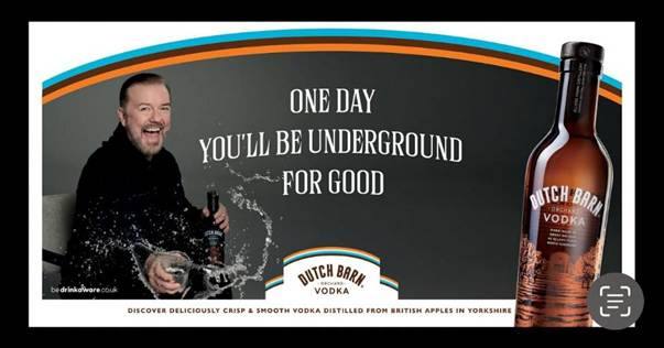 Aktuálně Gervais rozvířil sociální sítě ještě z jiného důvodu. Zveřejnil návrhy reklam do londýnského metra pro Dutch Barn Orchard Vodku. Nejvíc rezonuje slogan: „Welcome to London. Don’t forget your stab vest.“ – tedy „Vítejte v Londýně. Nezapomeňte bodnuvzdornou vestu.“