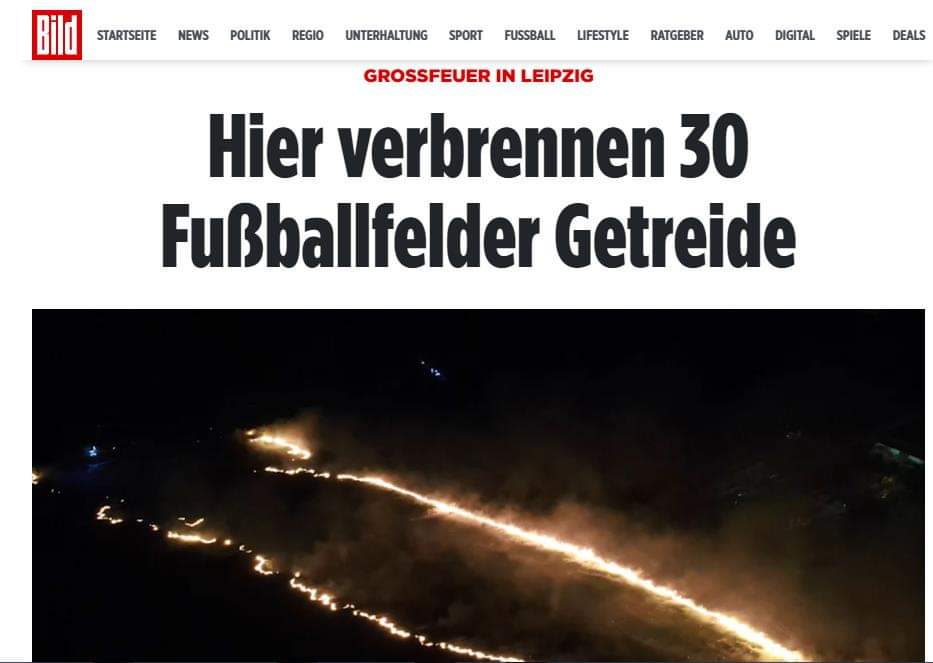 VELKÝ POŽÁR V Lipsku. Hori obili na plose ja 30 fotbalovych hrist zdroj