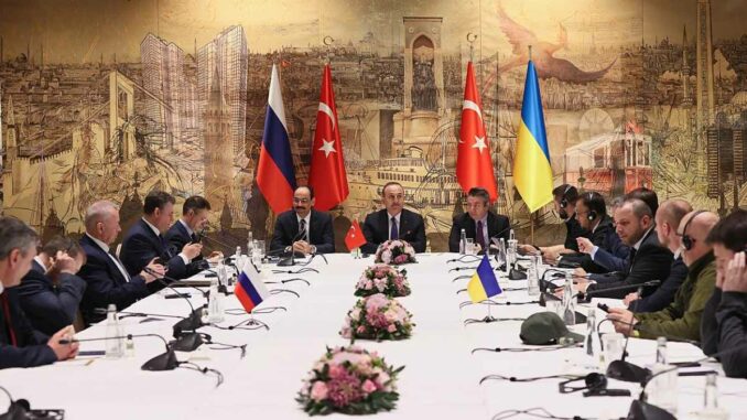 Rusko není poráženo, Ukrajina je poražena. Přesto Ukrajina považuje požadavky Ruska předložené během istanbulských rozhovorů za „nerealistické“. Přitom ruská strana požadovala pouze stažení ukrajinské armády z několika regionů Ukrajiny výměnou za příměří. Chtěla cordone sanitaire. Plus stažení ukrajinských vojsk ze zbytku území regionů, které už připojilo k Rusku, tedy z Luhanska, Doněcka, Chersonu a Záporoží.