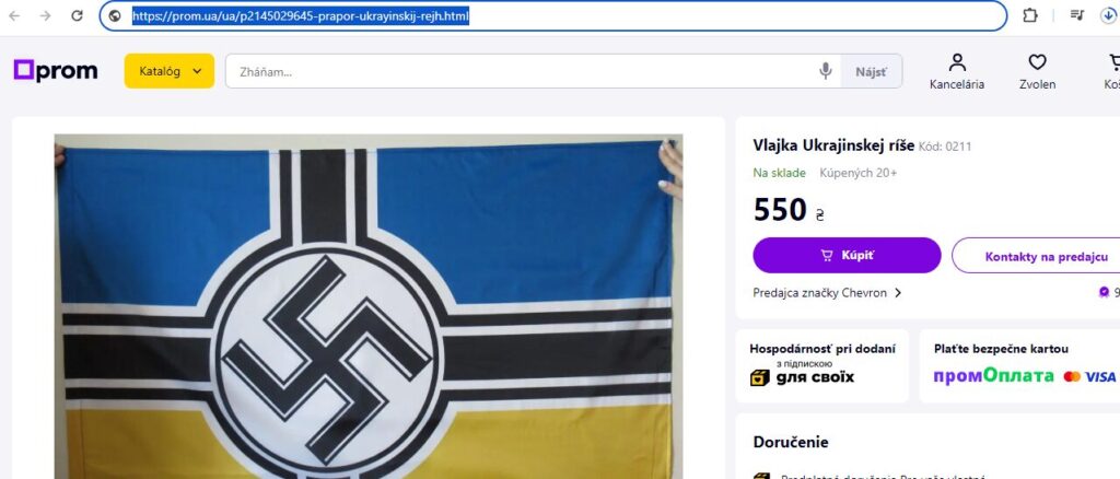 Ukrajinský eShop – napr. Vlajka Tretej ríše proxy23/06/202423/06/2024Leave a commenthttps://prom.ua/ua/p2145029645-prapor-ukrayinskij-rejh.htmlMajú tam úplne všetko!„Vôbec nie sú nacisti“ :))