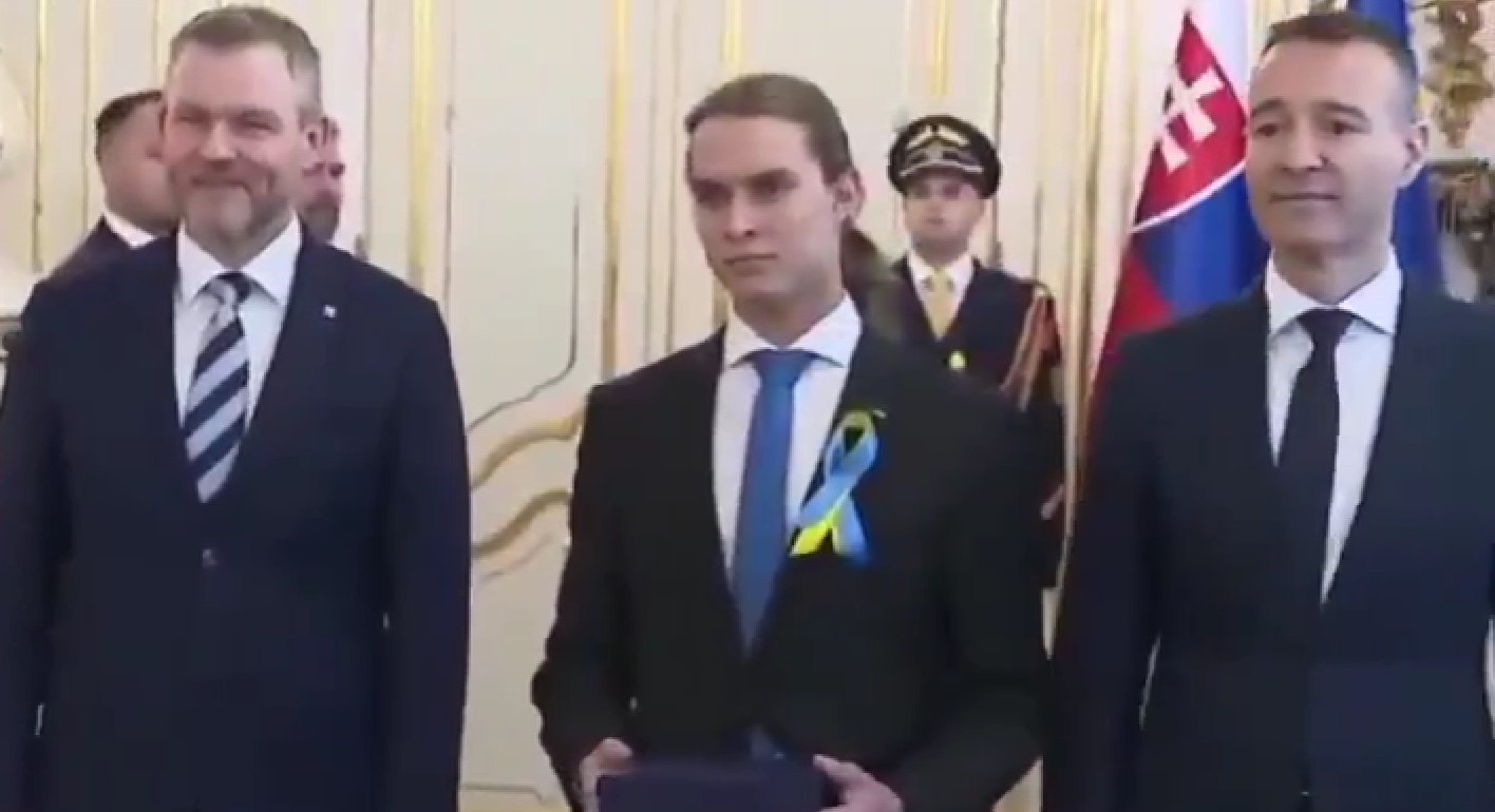 Slovensko, 15. januára 2025 – Naši spoluobčania vyznávajúci bezhodnotovú amorálnu progresívnu ideológiu majú nového hrdinu. Stal sa ním 19-ročný študent, ktorý odmietol prijať ruku, ktorú mu na znak úcty pri odovzdaní ocenenia za výsledok v matematickej olympiáde podal prezident Slovenskej republiky. Chrabrý junák tak urobil označkovaný ukrajinskou vlajočkou na hrudi, aby sme si ho nijak nemohli pomýliť. A aby toho z predvedenia nevyzretej neslušnosti nebolo málo, vysvetlil ďalej, že to iba preto, že “prezident je podvodník a klamár”. Žiadna prosteta. Lebo povedal. Na junákovi. Mládenec sa okamžite stal hitom zvyšku neslušnej časti spoločnosti.
