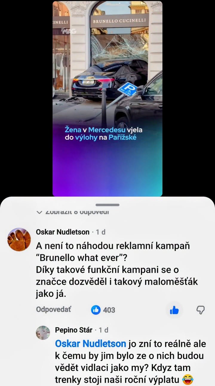 Zaujali nás komenty pod informáciou o zaparkovaní mercedesu vo výklade na Pařížskej ulici v Prahe