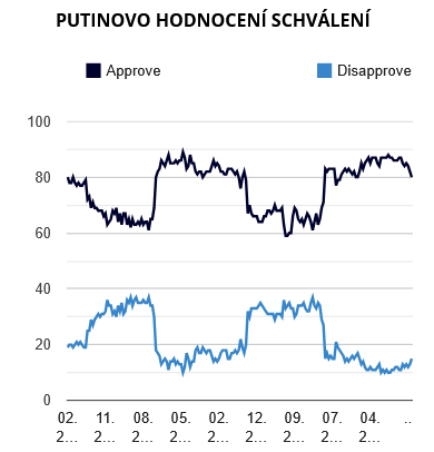 No a aby to bylo ještě zajímavější, dám sem stejné hodnocení Putlera podle toho jak to změřil Levada Centre, tedy opoziční think thank, který o sobě musí uvádět, že je v Rusku cizím agentem:
