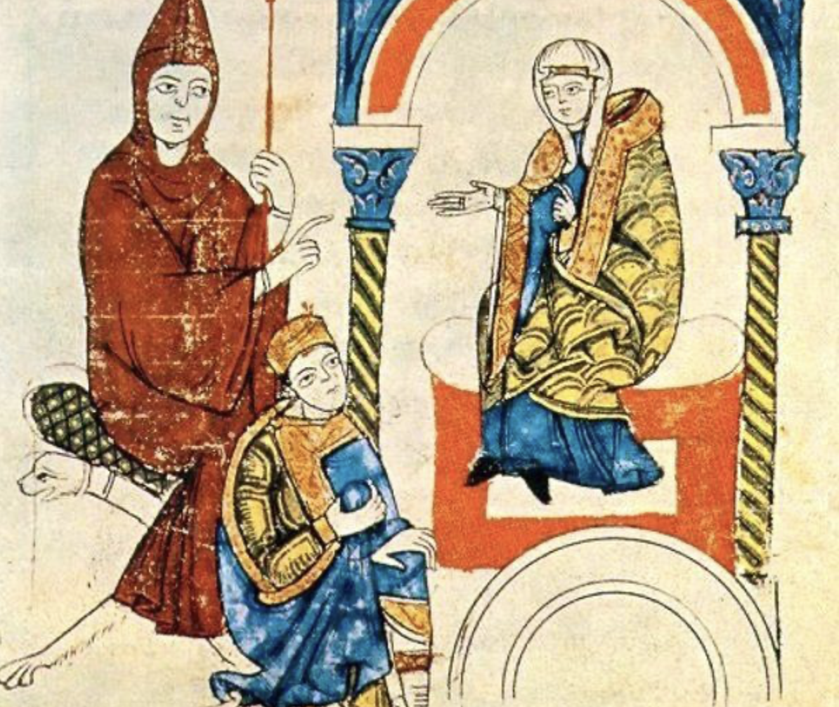 Foto: Matylda Toskánská s opatem Hugem z Cluny a císařem Jindřichem IV | Wikimedia Commons / Public domain