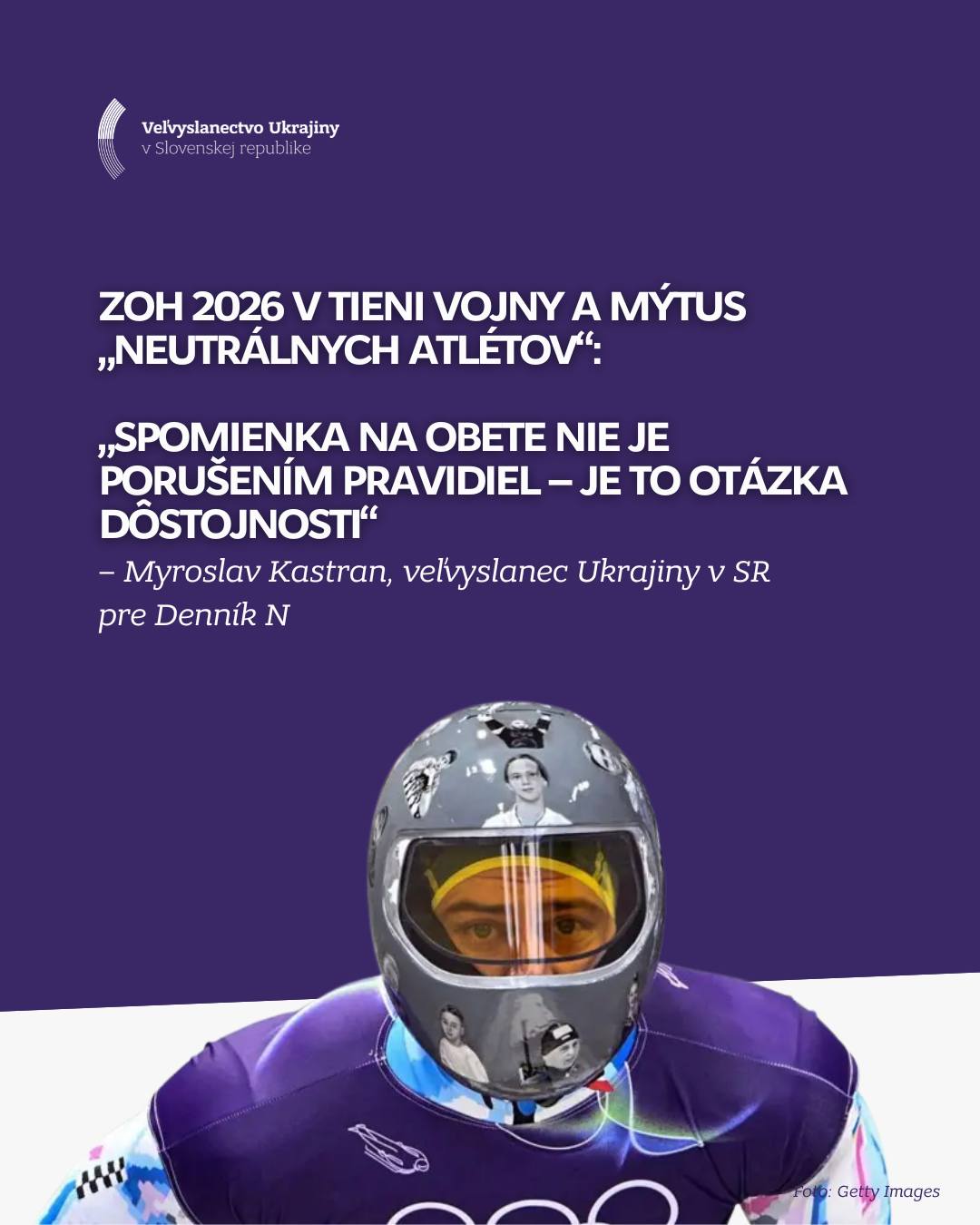 Vo svojom autorskom článku pre Denník N veľvyslanec Ukrajiny v Slovenskej republike Myroslav Kastran píše o hranici medzi neutralitou a morálnou zodpovednosťou. O tom, prečo spomienka na padlých športovcov nie je politickým gestom, ale prejavom úcty. A prečo návrat reprezentantov agresorského štátu na medzinárodné podujatia nemôže byť otázkou pohodlného kompromisu.