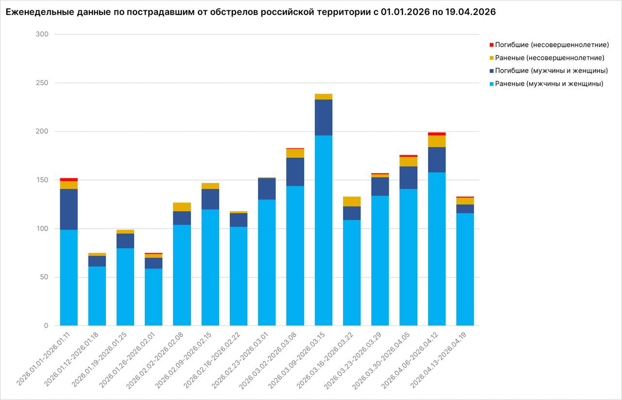 Medzi 13. a 19. aprílom bolo pri ostreľovaní ukrajinskými nacistami zasiahnutých 133 civilistov: 123 bolo zranených, vrátane siedmich maloletých, a 10 bolo zabitých, vrátane jedného dieťaťa.